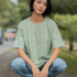 Crafted from 100% pure cotton, it feels exceptionally soft on the skin while keeping you fresh and comfortable all day long. The soothing sage tone adds a natural calm to any outfit — pair it with jeans, shorts, or skirts for an effortlessly laid-back look that never goes out of style.